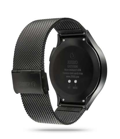 Introducing the future. Saturn's unique digital display rides through time by propelling its hour and minute through black segments. The hour can be deciphered from its outer ring of 12 segments and minute from inner ring of 60 segments. This futuristic piece comes with a stainless steel casing and 24 mm stainless steel mesh strap.